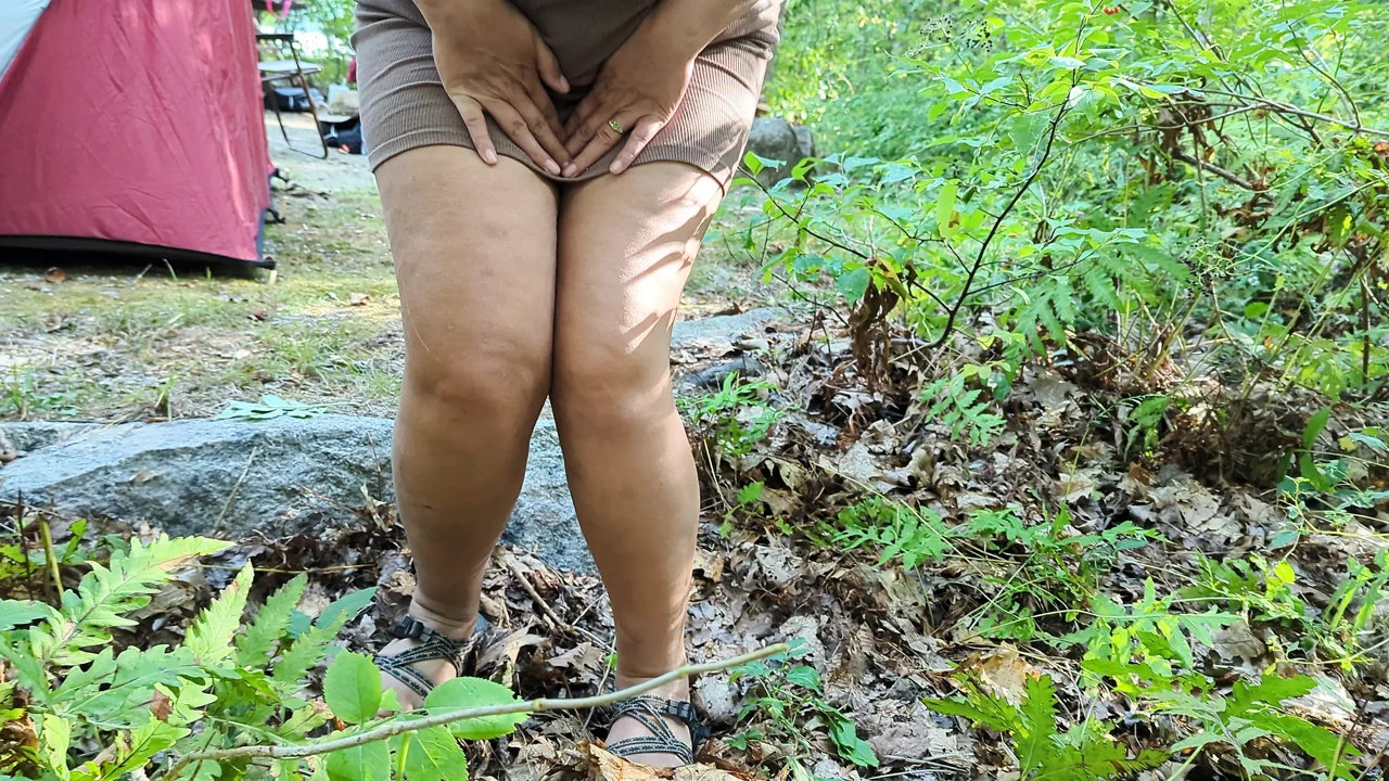 Naughty pissing at the campsite